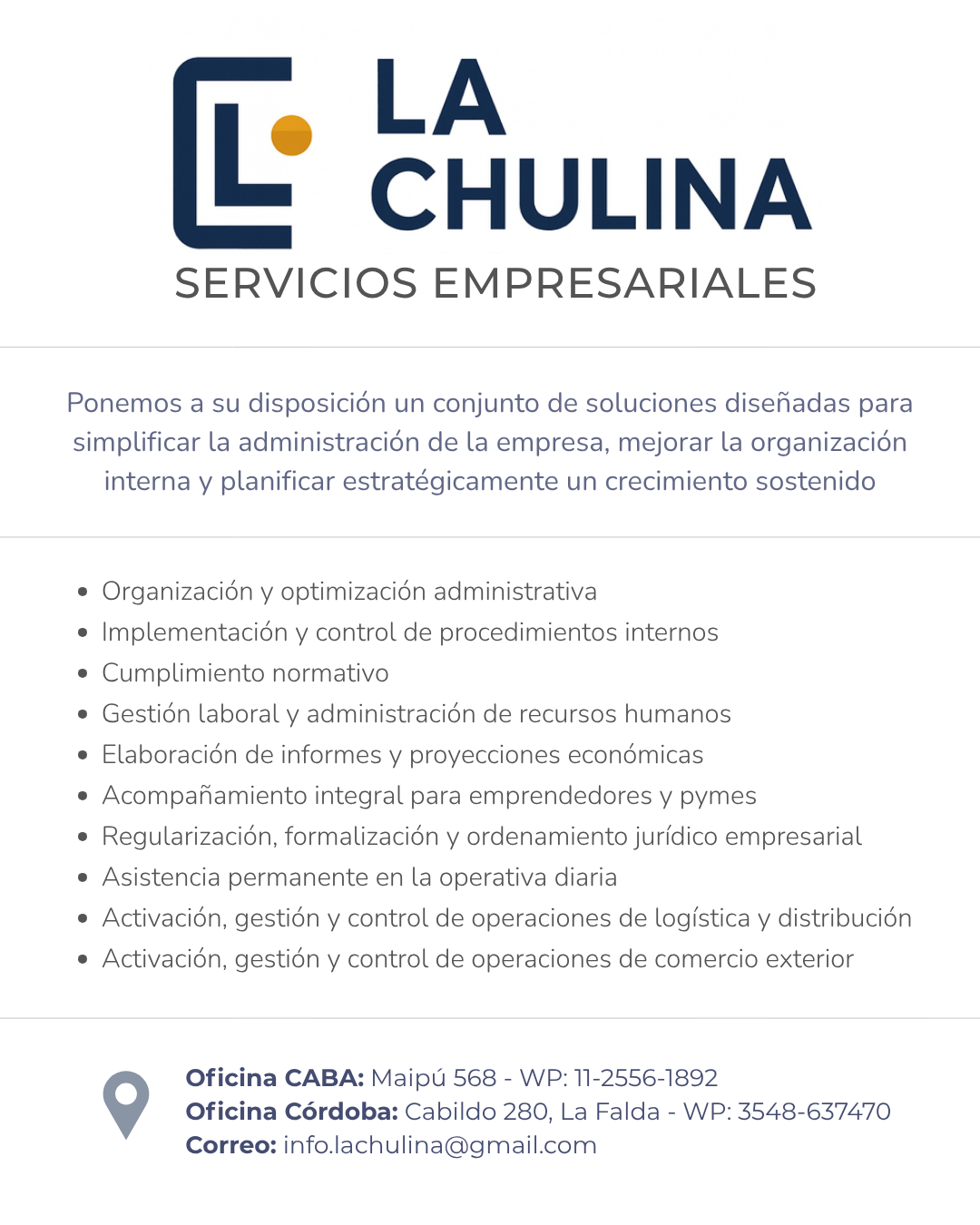 Responsabilidad, Compromiso, Cordialidad, Privacidad, Capacitación constante y el uso de la tecnología como herramienta para potenciar su negocio y nuestra tarea, conforman los pilares de nuestros servicios.